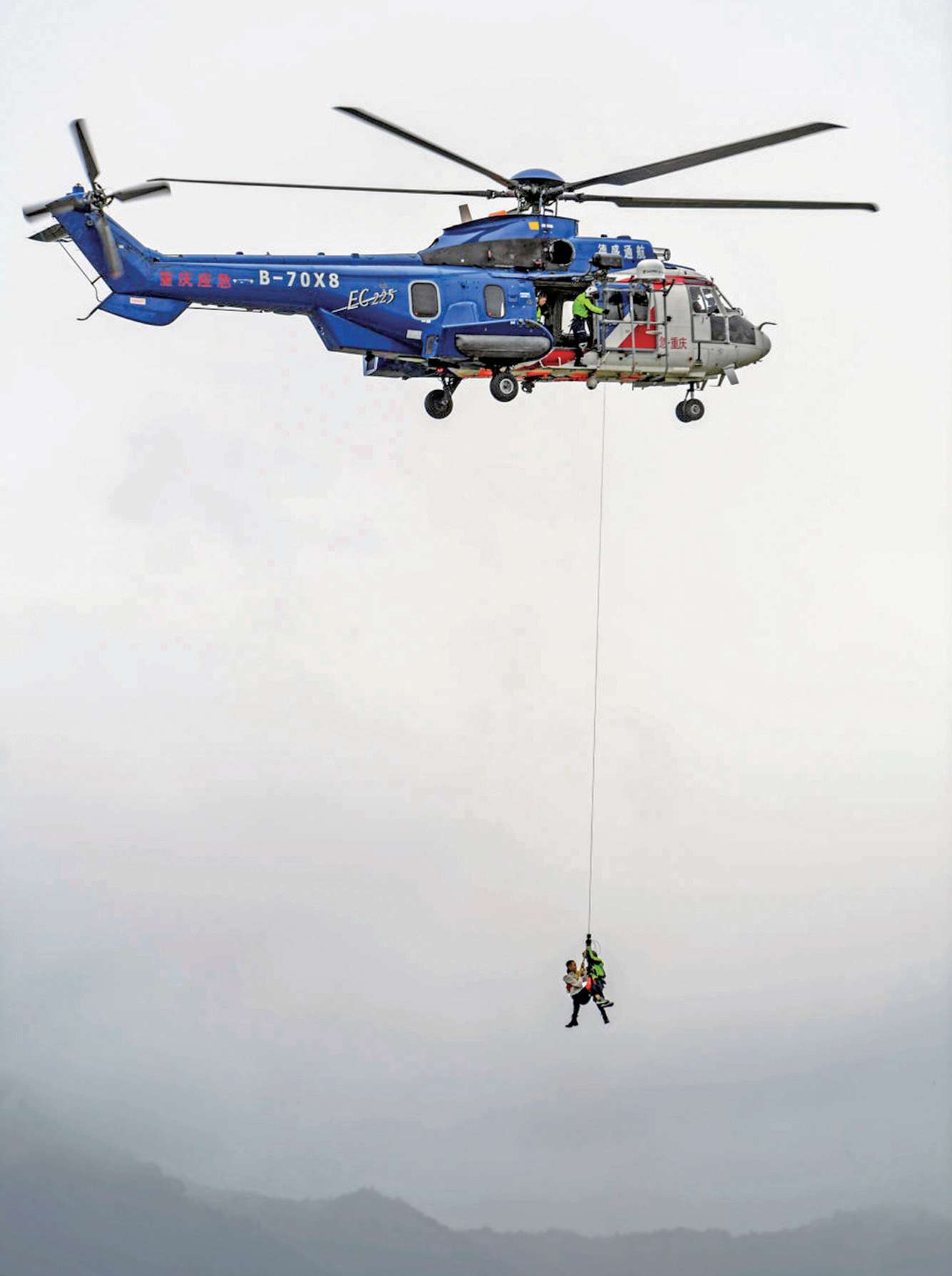 重庆市航空应急救援总队正在进行航空应急救援演练。(新华社记者 王全超 摄)