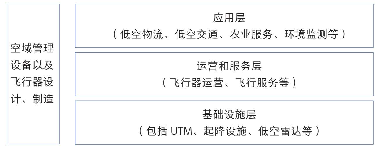 在运营和服务层,通过无人机及其他载具形成覆盖广泛的低空运营和飞行服务网络。