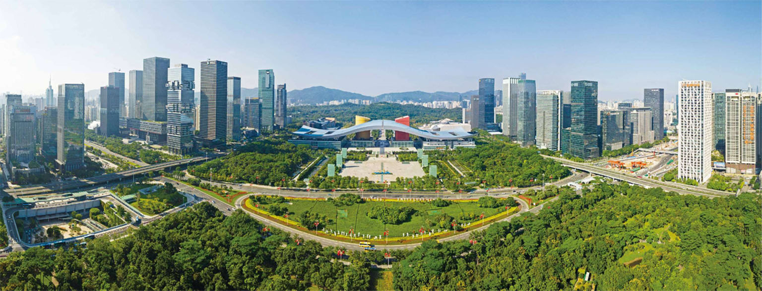 ★ 2020年10月2日拍摄的深圳市民中心和莲花山公园一线。(新华社记者梁旭摄)