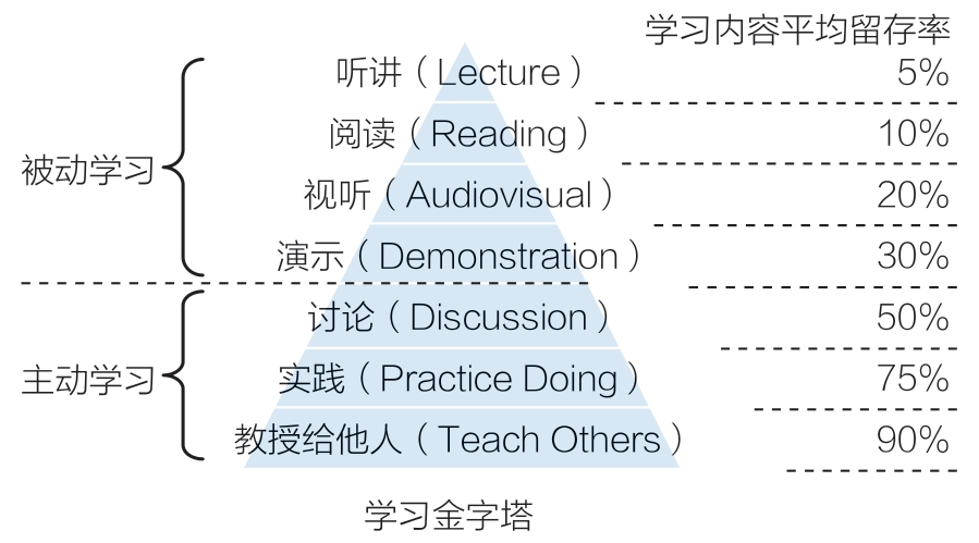 图2-3 美国国家训练实验室对学习留存率的研究成果