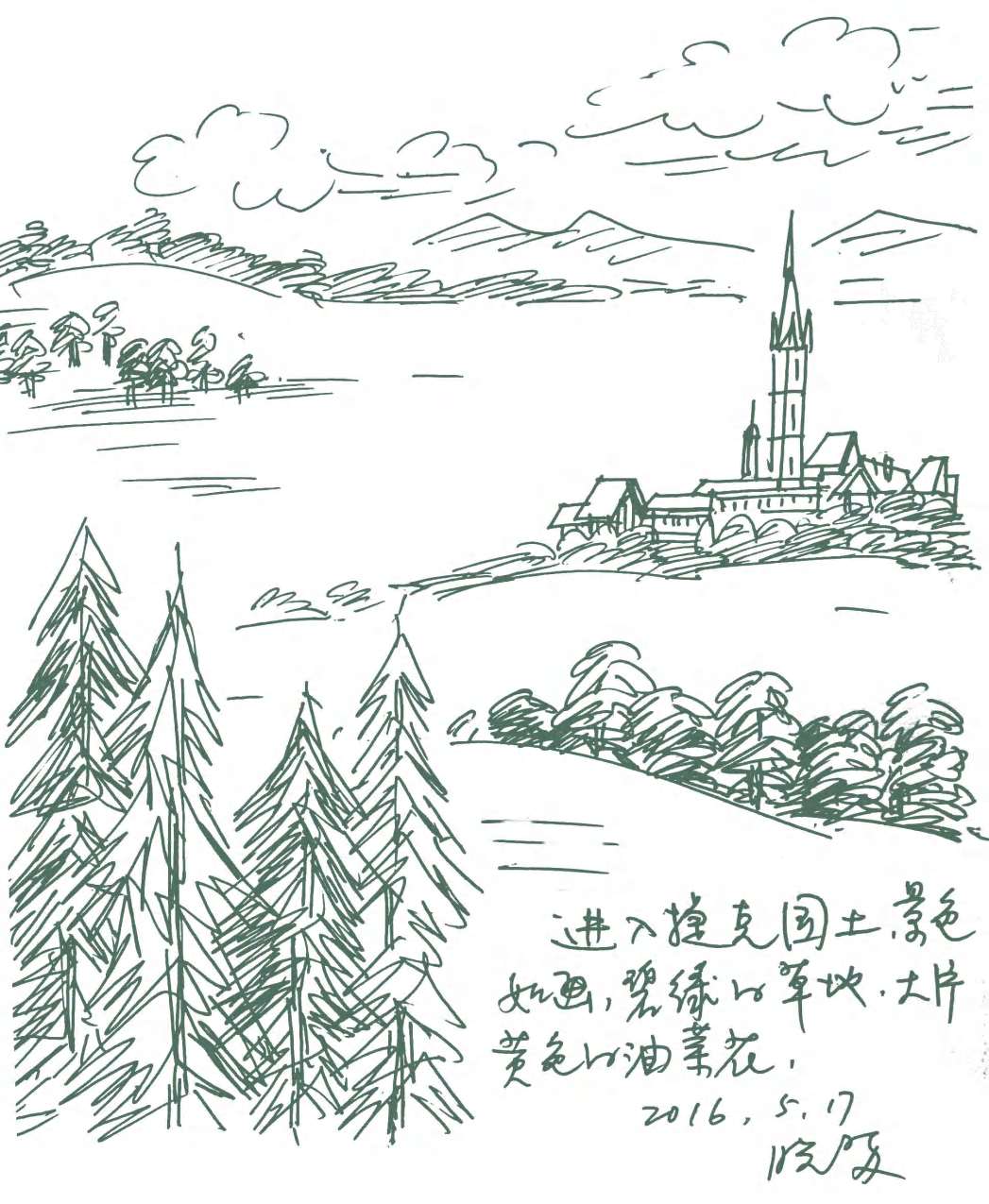 进入捷克国土,景色如画,碧绿的草地,大片黄色的油菜花,童话世界正向你展开。
