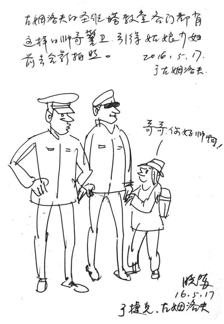 与警卫合影