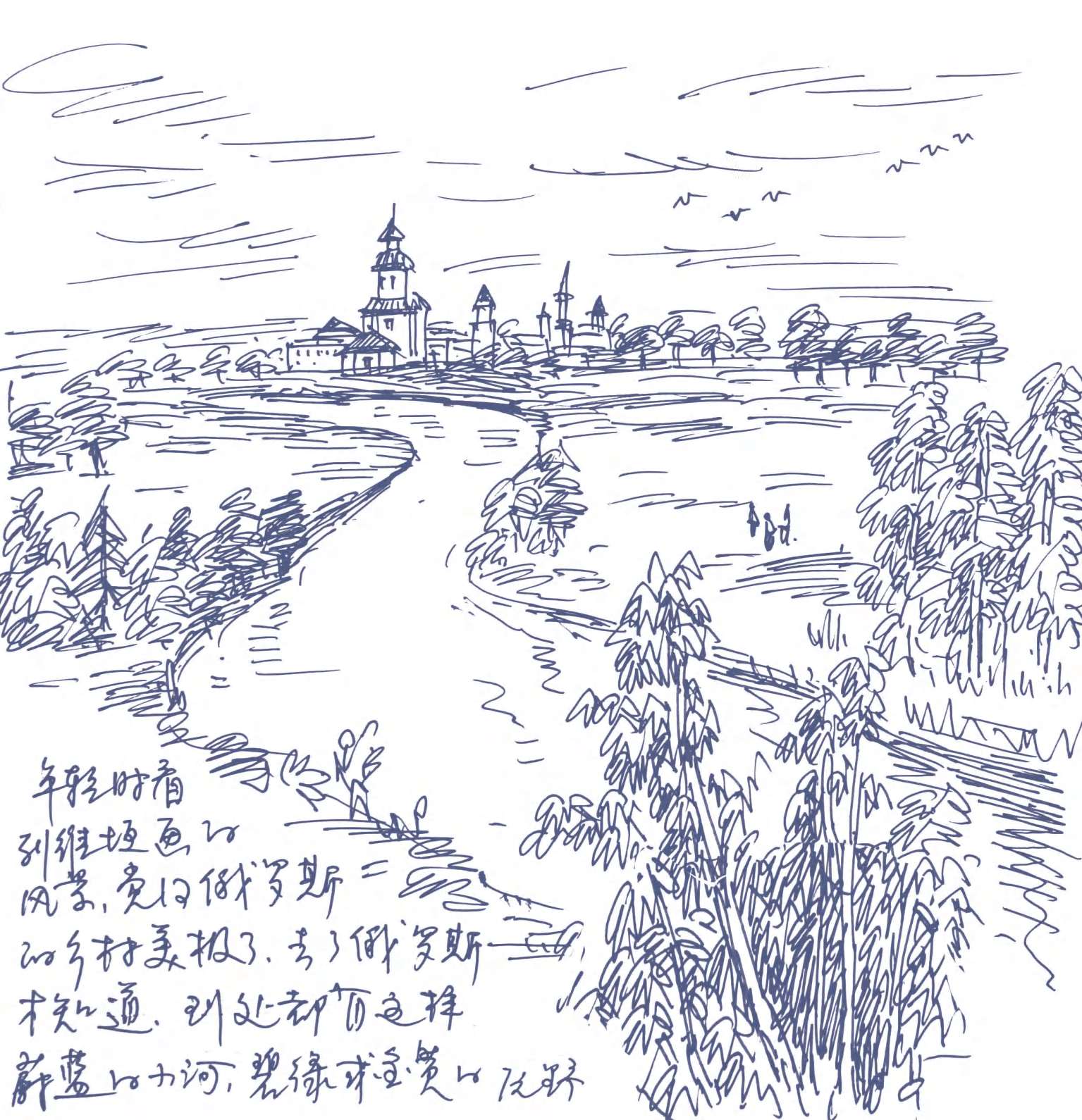 年轻时看列维坦的油画风景,感觉美极了。去了俄罗斯才知道,到处都有这样蔚蓝的小河,碧绿或金黄的原野。