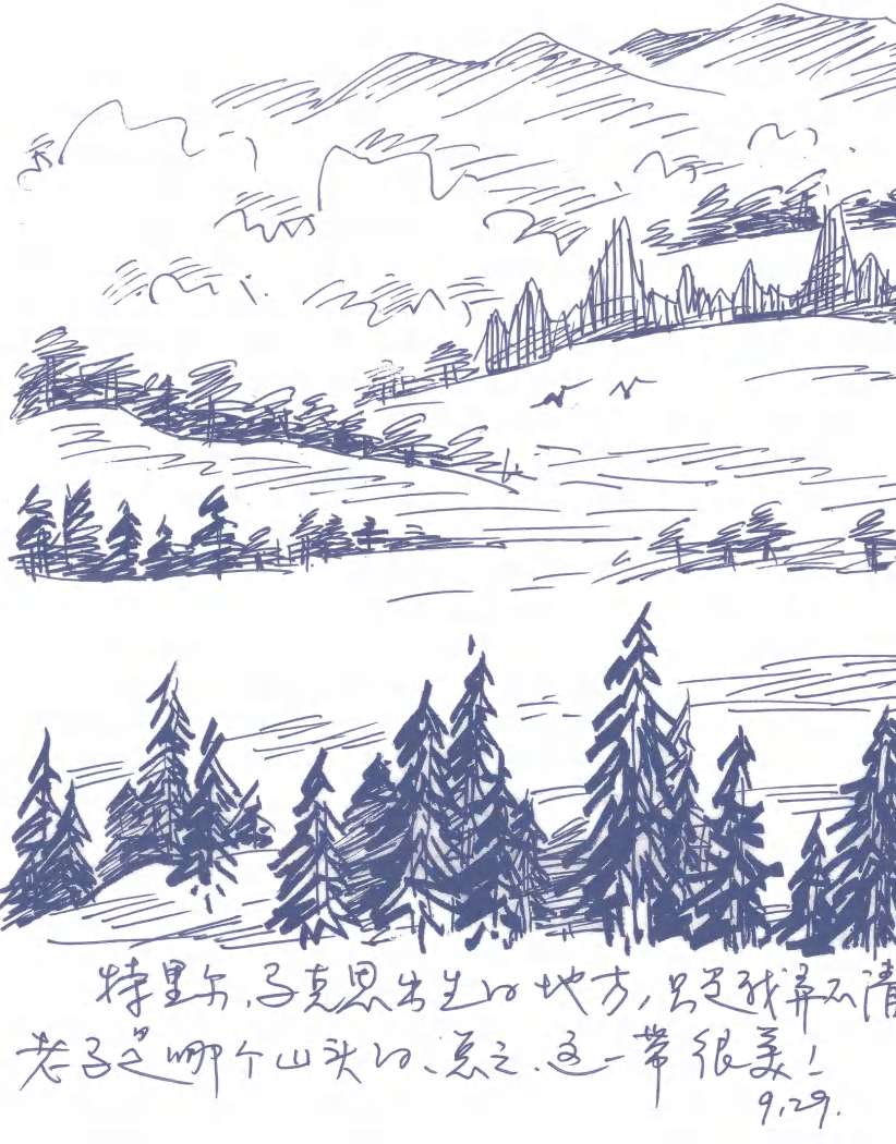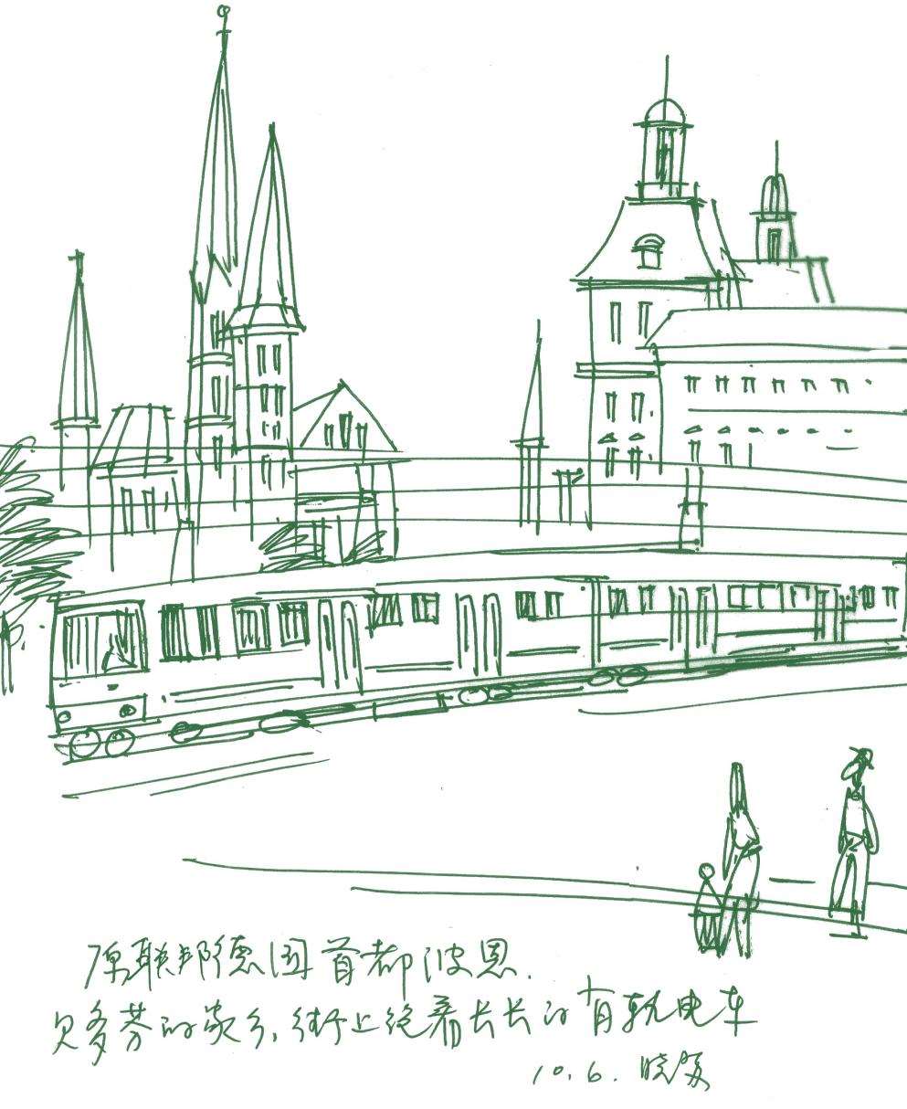 我去过德国两次,一次从法国那边自西向东行,另一次则直飞柏林。我把两次的速写合在一起,形成了我对德国的印象。