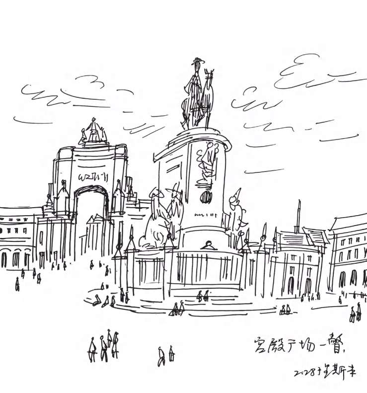 宫殿广场也叫侯爵广场,1755年,大地震将皇宫夷为平地,当时的总理彭巴侯爵下令大规模重建里斯本。为纪念他,在广场中央矗立了侯爵雕像。
