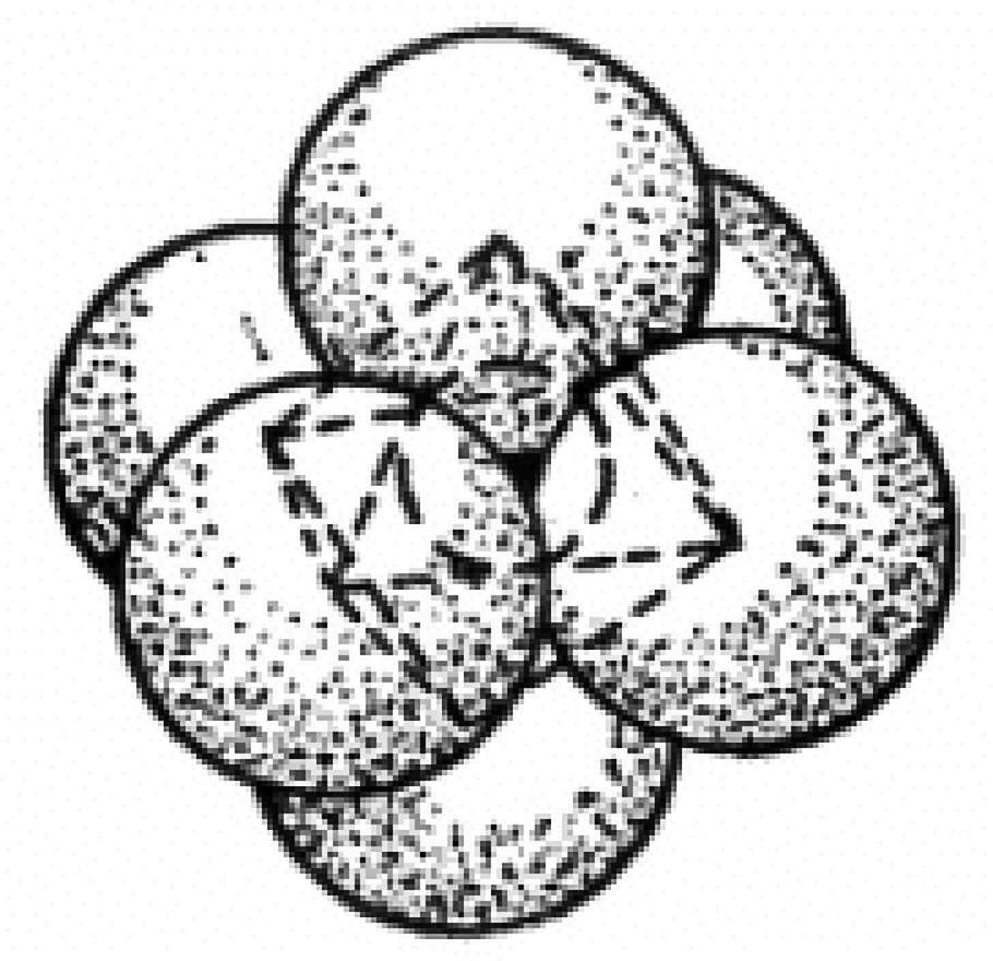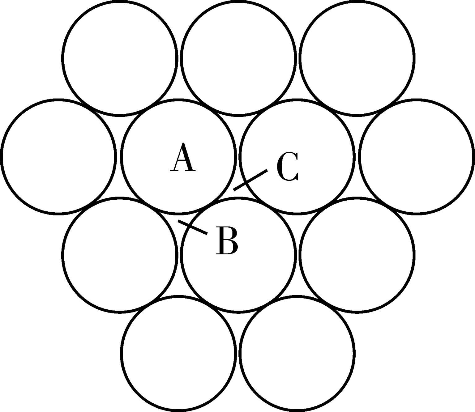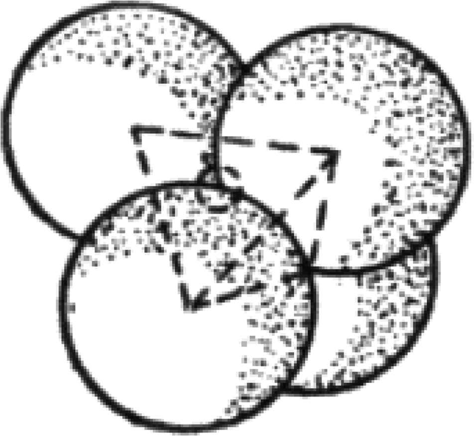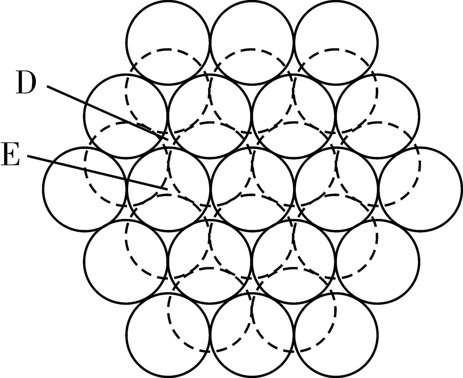 图2-1 等大球体在平面内的最紧密堆积及其空隙