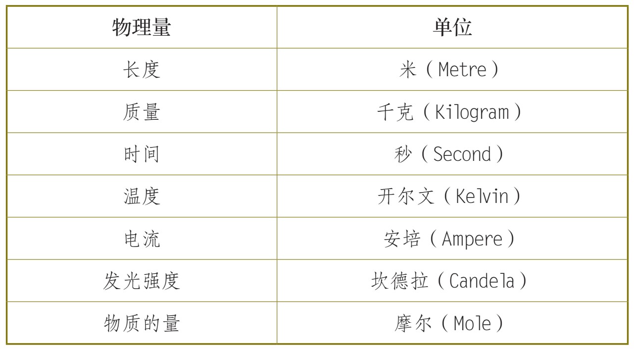 2. 计量单位:根据2018年10月26日修订的《中华人民共和国计量法》第三条规定,“国家实行法定计量单位制度。国际单位制计量单位和国家选定的其他计量单位,为国家法定计量单位”。国际单位制(SI)中的七个基本量及其单位如表1所示: