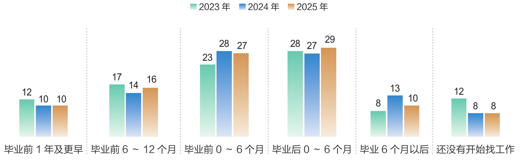 值得注意的是,有一部分人群将求职时间前置到毕业前6~12个月,这样可以覆盖三个主要招聘季度,提高求职成功率。