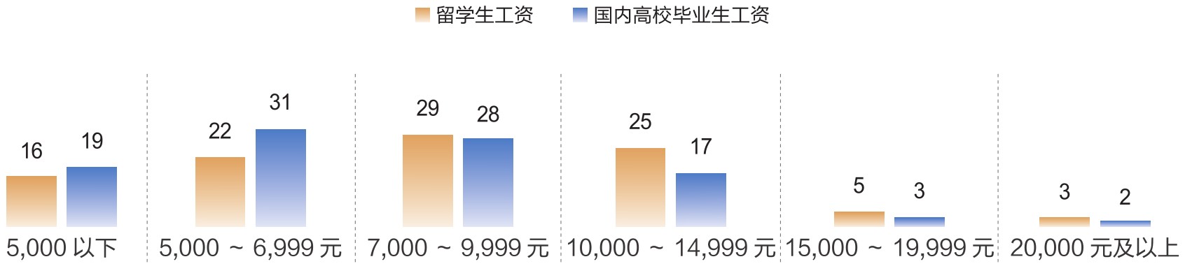 留学生VS国内高校毕业生工资水平 (单位:%)