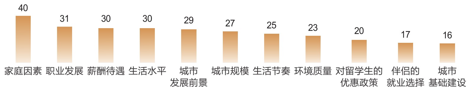 2025年已留学人群就业城市的考虑因素 (单位:%)