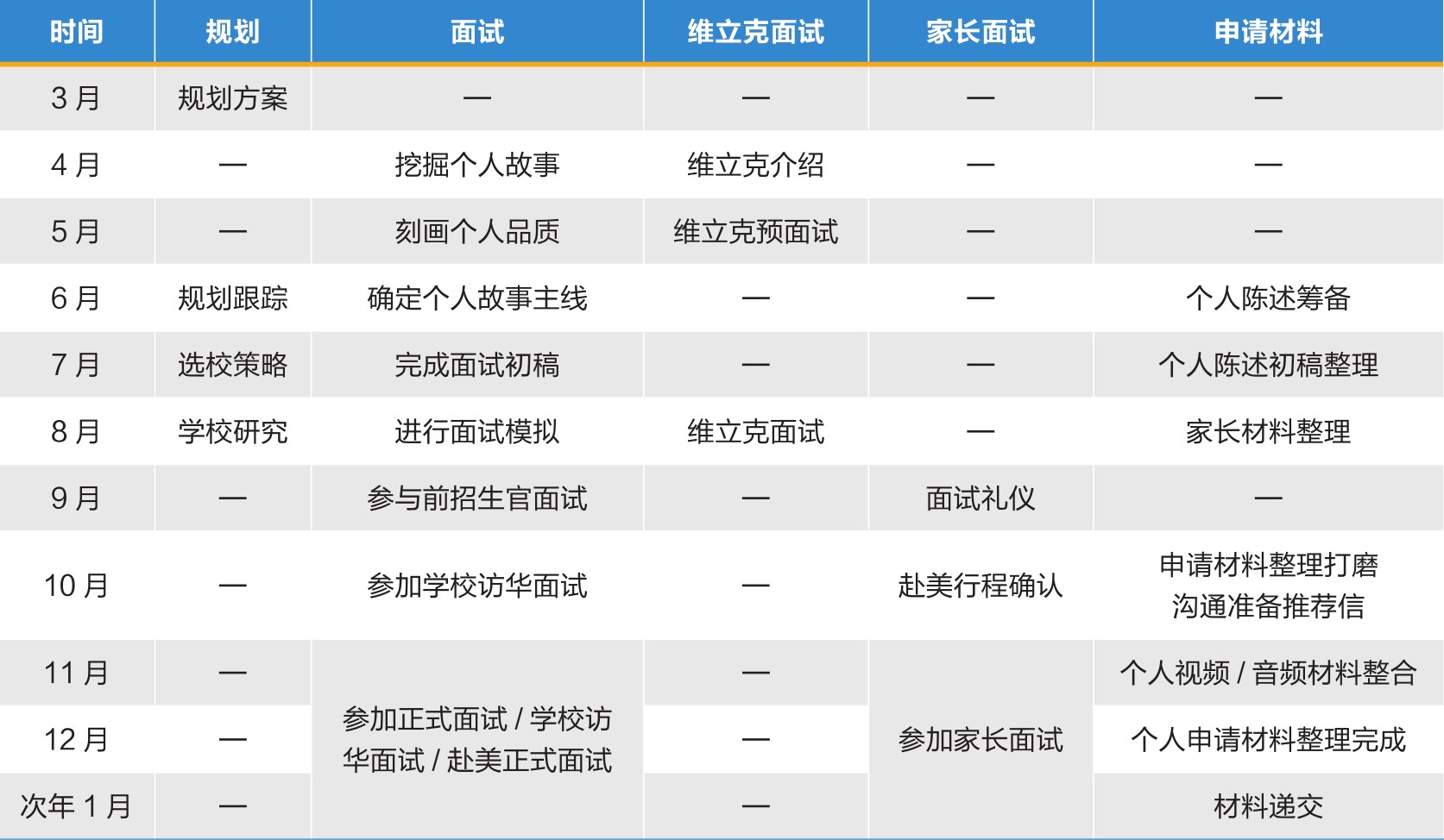 建议申请者要严格遵守各校的时间节点,在申请截止前及时提交申请材料,并准备可能的面试。寄宿美国中学的申请截止日通常是每年的1月15日,大部分走读中学采取滚动招生政策。