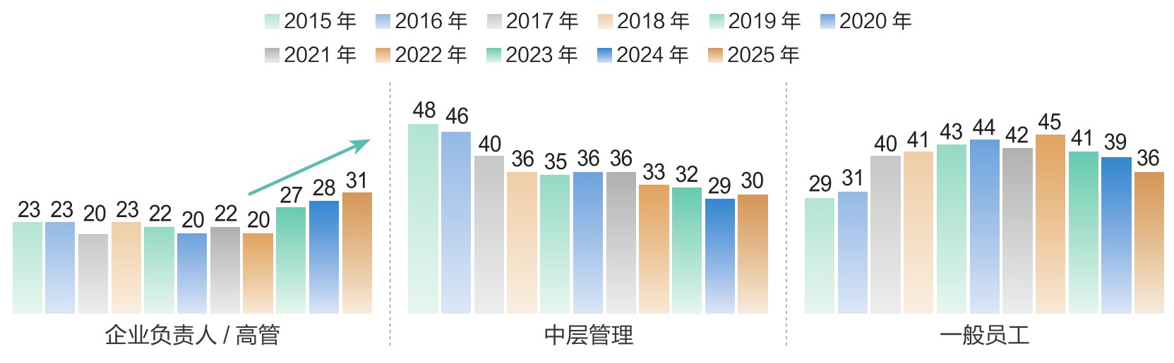 从家长的具体的职务来看,普通家庭的留学意向在过去几年中有所放缓。这可能与国内经济环境的不确定性有关。父母为一般职员或中层领导的家庭,在面对经济压力时,会更加审慎地考虑子女的留学问题。