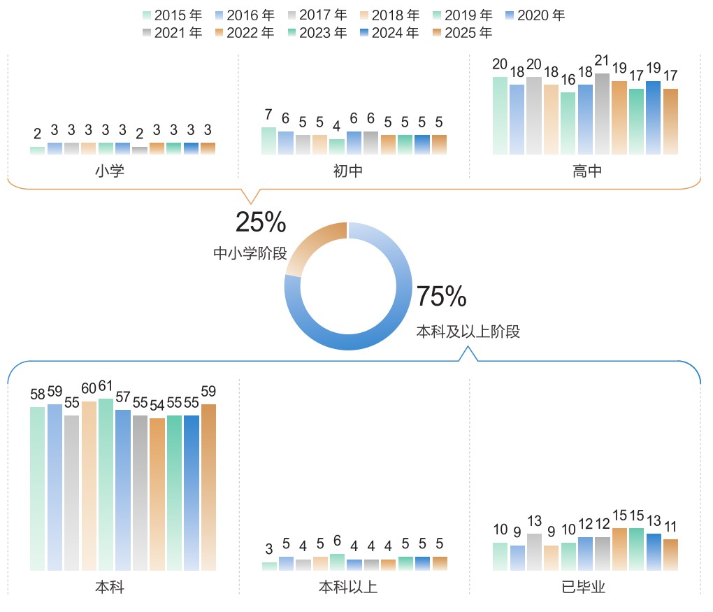 更引人注目的是,拥有“海归”学历背景的家长比例连续11年逐年增加,且当前占比已达到25%的历史新高。这也在一定程度上反映出近年来中国海外留学人数的不断增长,“海归”人群在国内的影响也在不断扩大。这些家长基于自身的海外留学经历,对国外教育体系更加熟悉和认可,因此更倾向于让子女也走出国门,接受国际化教育。
