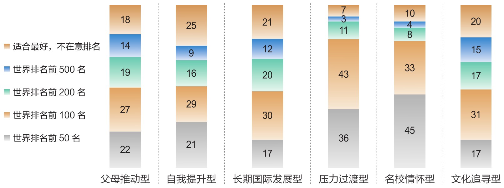 不同类型人群对留学院校排名的倾向 (单位:%)