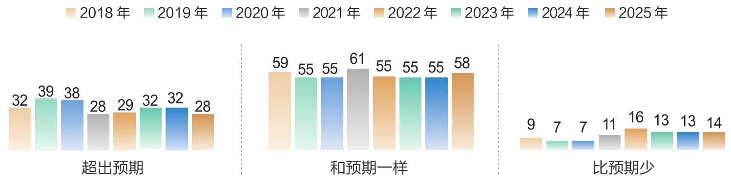 已留学人群留学期间的实际花费与预期对比 (单位:%)