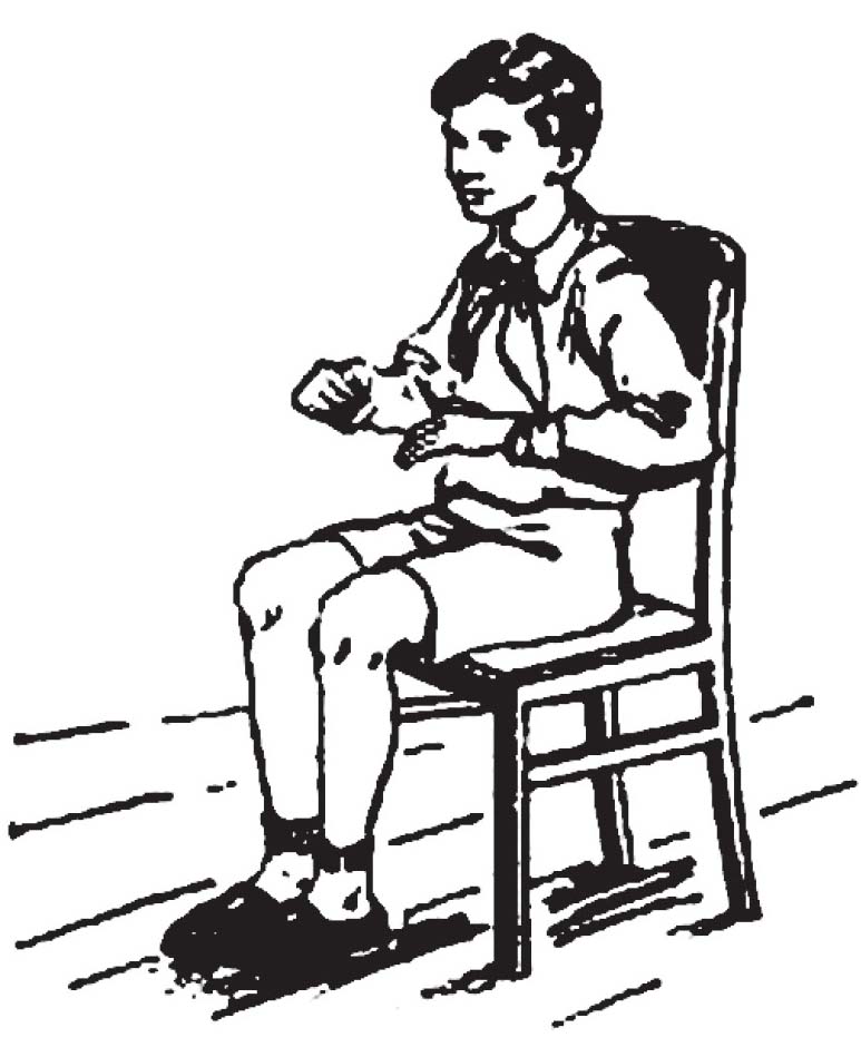 一个站着的人不会摔倒,如果在他的重心垂直线位于他双脚边缘围起来的范围内(图16)。所以单脚站立很难;站在钢丝绳上更难:因为支撑的底面非常小,重心的垂直线很容易超出它。您有注意到“老水手”们的步态有多奇怪吗?他们一生都在摇晃的船上度过,在那里,从他们身体重心引出的垂直线每秒钟都可能超过双脚所占据的空间,所以水手们才养成了这种行走的习惯,使他们身体的底部(即双腿分开距离更大)占据尽可能多的空间。这使水手们在摇晃的甲板上保持了必要的稳定性;在坚实的地面上行走时,他们自然而然地保持了同样的行走习惯。也可以举出相反的例子,保持平衡的必要性塑造了美丽的姿态。您有没有注意到,一个人在头顶承受负荷时体态看起来有多匀称?想必每个人都知道头顶水罐的女人的优雅雕塑。人在头顶着东西时,必须保持头部和躯干笔直:最轻微的倾斜都有可能将重心(在这种情况下重心高于正常位置)从地面的支撑范围中偏离,然后破坏身体的平衡。让我们再回到前面那个坐着的人站不起来的实验。坐着的人的身体重心,在他身体内靠近脊柱的部位,大约比肚脐高20厘米。从这一点向下画一条垂直线:它会在脚后面的椅子下方。而一个人若想站起来,这条线必须穿过 他双脚边缘的范围内 。