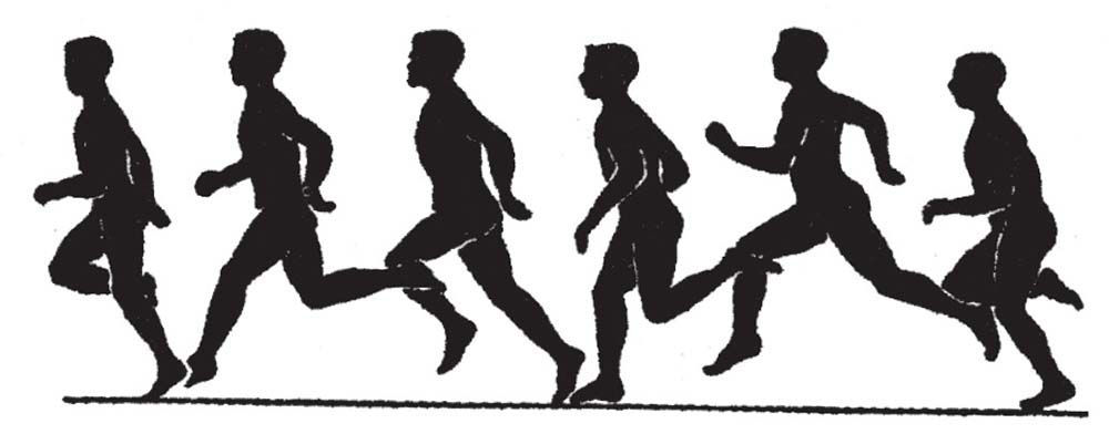图19 人是如何跑步的。跑步时身体的连续姿势(有时双脚都没有支撑在地面上)