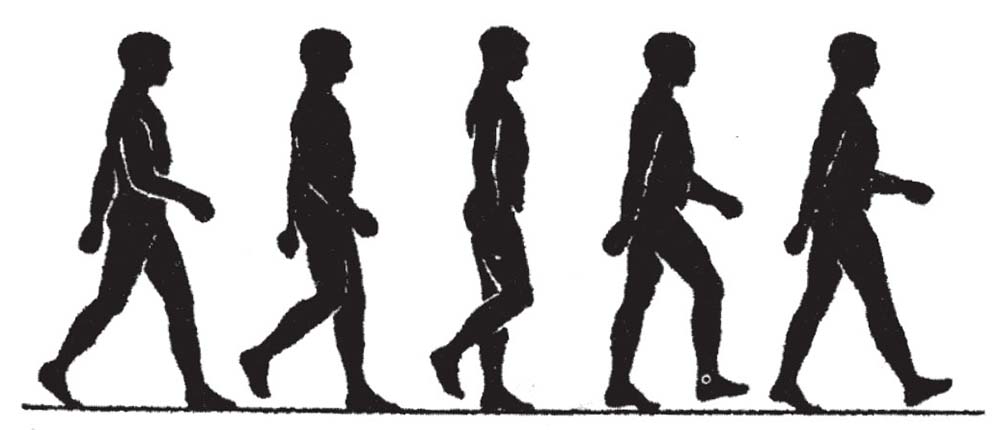 您对一生中每天要做成千上万次的事情,一定很清楚。这是通常的想法,但并非总是正确的。最好的例子就是走路和跑步。还有什么比我们对这些运动更熟悉的吗?有多少人清楚地知道,我们走路和跑步时是如何移动身体的,这两种运动之间有什么区别?让我们听听生理学家对走路和跑步是怎么说的吧(摘自保罗·贝尔教授的《动物学讲座》;编者添加了插图)。我相信对于大多数人来说,这种描述是非常新鲜的。