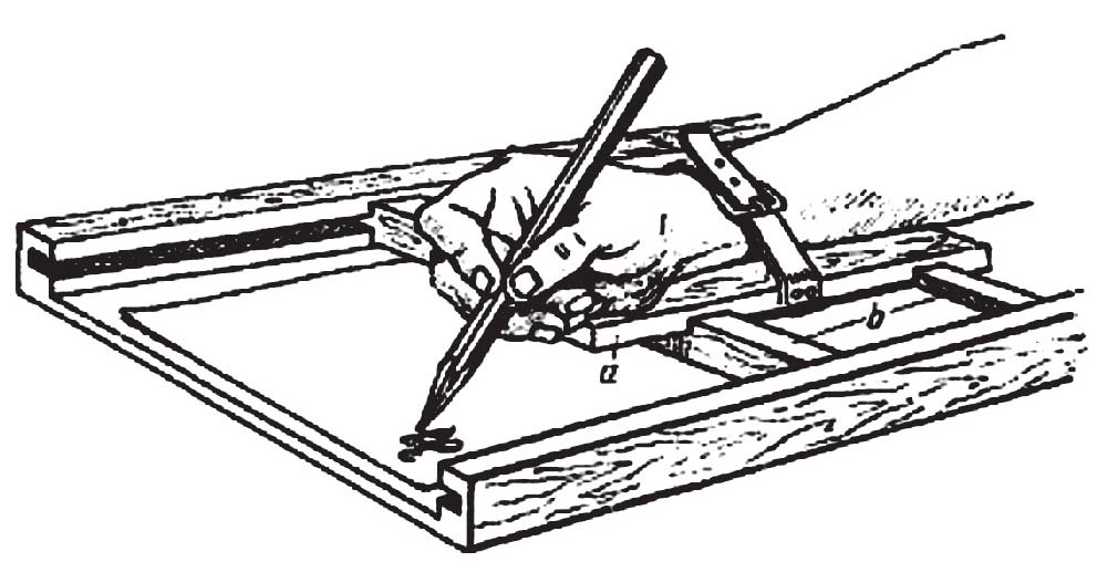 这是可以通过图22中所示的装置来实现的。把拿着钢笔的手固定在木板 a 上,木板 a 可以在木板 b 的凹槽中移动;木板 b 可以沿着另外一个木框的卡槽滑动,书写时可以放在车厢的桌子上。正如我们所见,手有足够的移动空间,可以一个字母接着一个字母、一行又一行地写字;与此同时,木板上纸的每一次震动都会在同一时间以同样的强度传递给握笔的手。在这种情况下,在行驶的火车上写字变得像在静止的车上一样方便;唯一的障碍是眼睛的视线在纸上一直跳动,因为头部和手并没有同时受到震动。