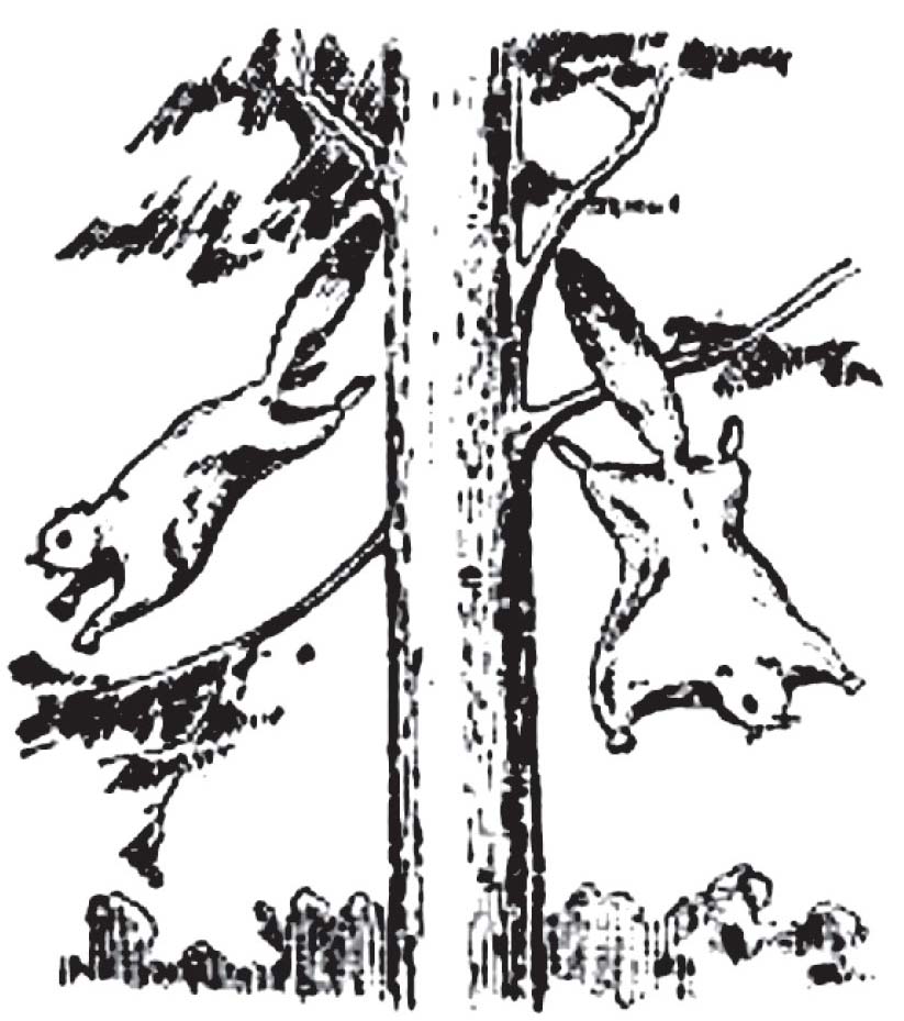 图32 飞行中的飞鼠。飞鼠可以从高处跳出20—30米的距离