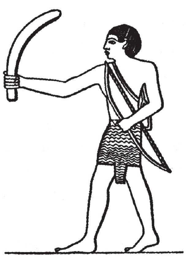 图38 古埃及壁画上一个手握回旋镖的战士形象