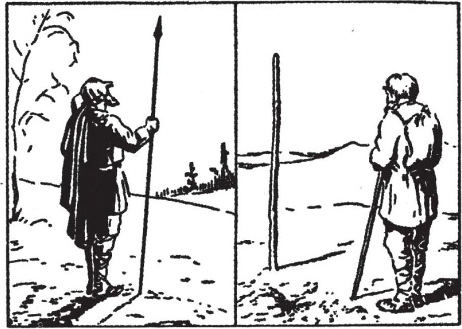 图3 通过太阳在天空中的位置(左)和阴影的长度(右)来确定一天中的时间
