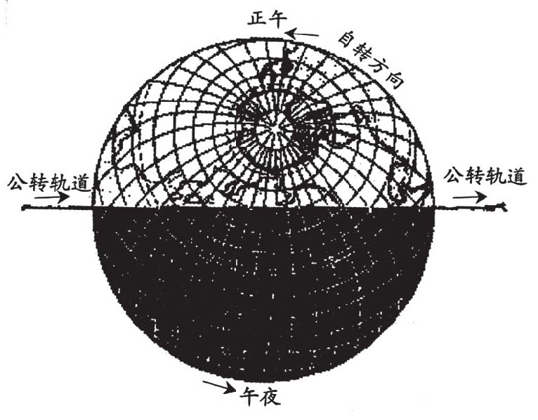 图6 处在地球夜晚那半的人们围绕太阳运动的速度比在白天那半的人们快