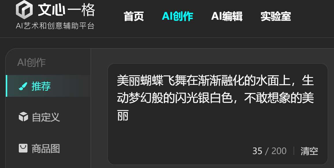 如图2-31所示,文心一格有AI创作、AI编辑、实验室等功能。它可以帮助我们根据输入的文本内容生成艺术类的作品。