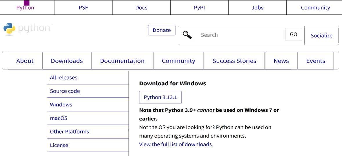 如果所使用的电脑安装的操作系统是Windows 7,那么就只能使用Python3.8或者更低的版本。老版本在官方网站是下载不到的,只能去一些第三方的下载源进行下载。使用国内的下载源除了能找到老版本的Python之外,还能有效地解决下载速度过慢的问题,所以这也是本书更为推荐的做法。但是使用第三方的下载源会有安全方面的风险,所以一定要去一些正规的网站进行下载,比如清华大学的下载源。一般来说,国内的大学或者编程社区都会有相应的资源分享站点,大家自行在网上搜索即可。