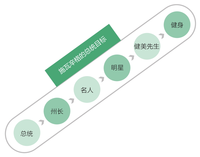 施瓦辛格以成为美国总统为终极目标,其成功路径正是使用倒推法设定目标的典范。从健身界的健美冠军到好莱坞的璀璨明星,再到加州的杰出州长,每一步都紧密围绕最终目标展开,体现了倒推法的精髓。