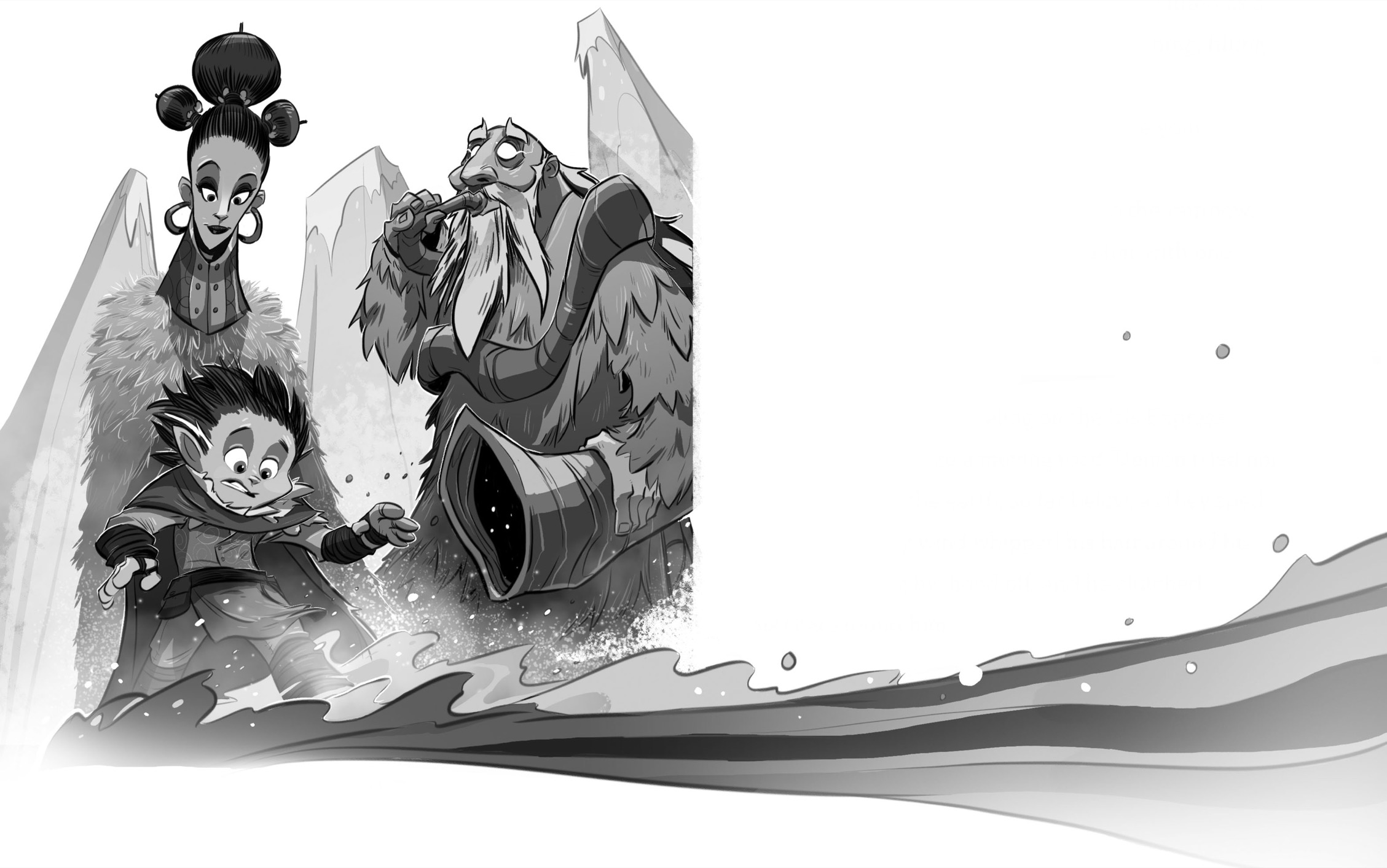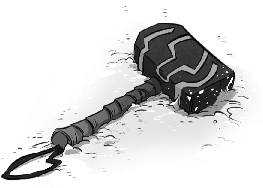 “Woo-hooo!” shouted Thor, launching Mjolnir upward at exactly the same moment. Demon’s eyes nearly fell out of his head. Instead of rising and then falling to the ground, the two hammers shot up and up into the sky. When they were no more than dark specks against the blue, white clouds boiled up around them. Thunder roared above, and then, like two streaks of silver lightning, the hammers returned to earth, hitting with a ground-shaking thump. Where they landed, the snow began to steam and hiss.