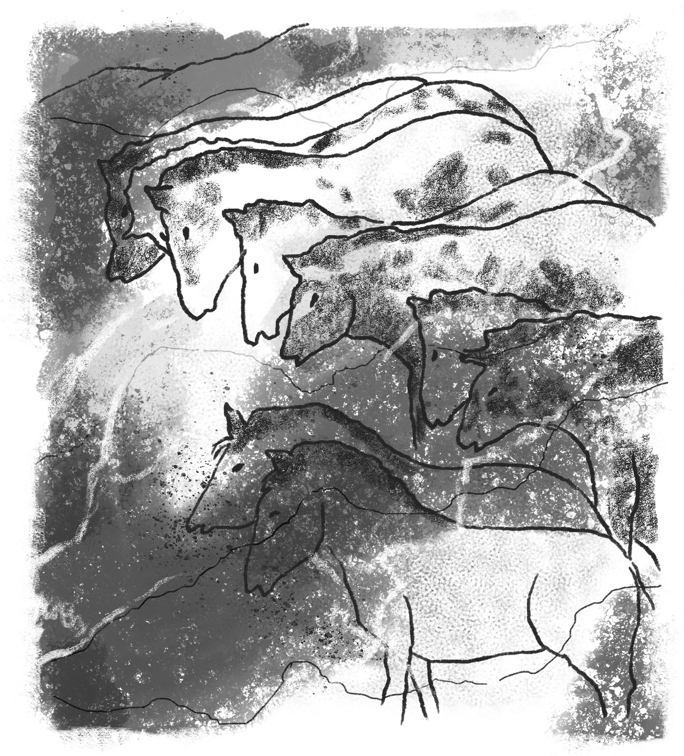 Sixty horses gallop along the cave walls. Red deer swim across a river. Shaggy-haired rhinos thrust their sharp horns in the air. Some of these paintings are huge. One of a giant ox measures eighteen feet across!