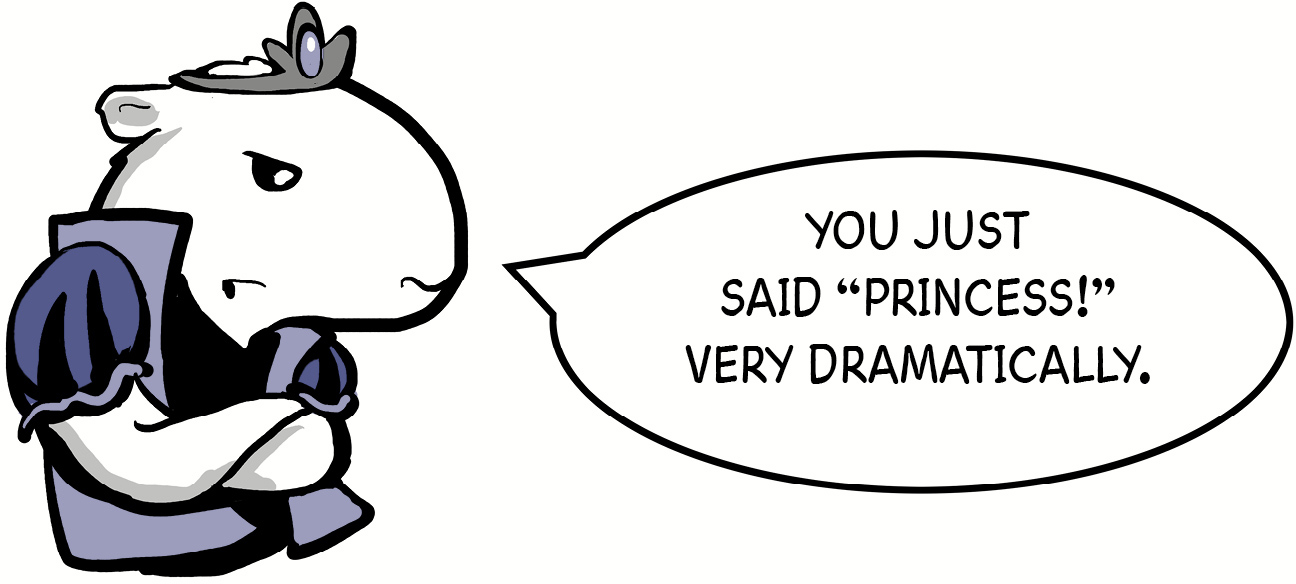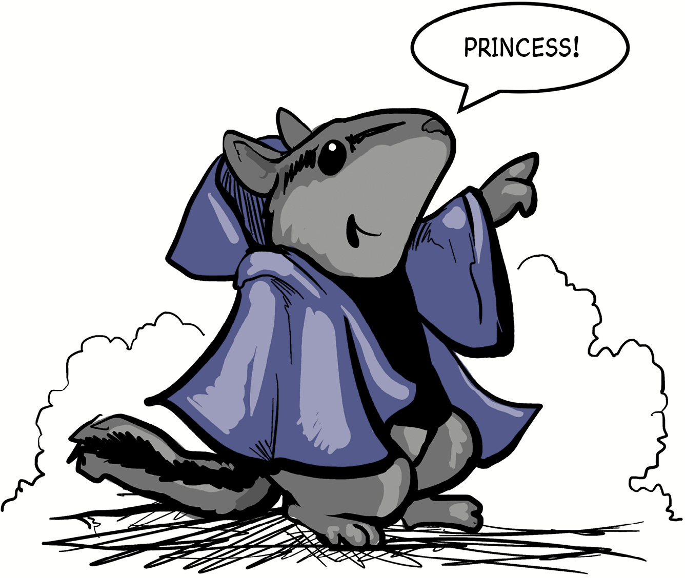 The cloaked figure had a striped face and appeared to be a chipmunk. “I don’t,” he admitted. “But you’re wearing a tiara, so you’re either a princess or you think you’re a princess, and I’m trying to sell you something here, so I’m happy to go along with your delusions.”