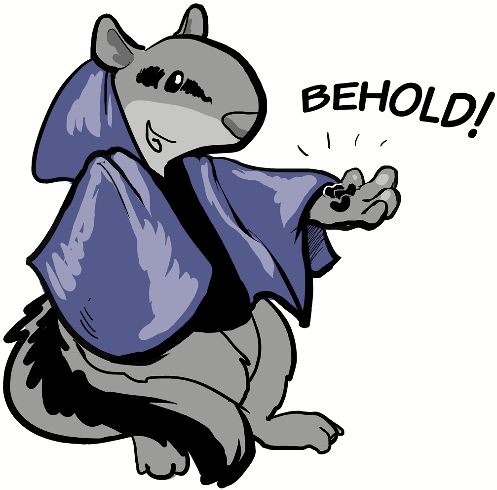 The chipmunk reached into his cape pocket and presented his goods with a flourish.