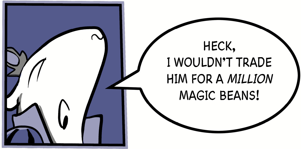 “In fact, these are quite possibly the most magical beans that have ever—HEY!”