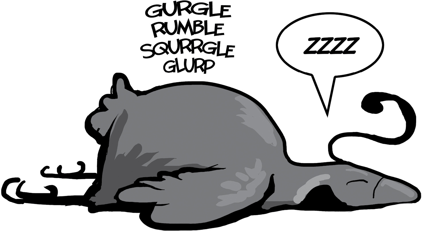 So she bedded down in a field, with Mumfrey downwind, and tried to sleep despite the noises that his innards were making. He sounded like bad plumbing.