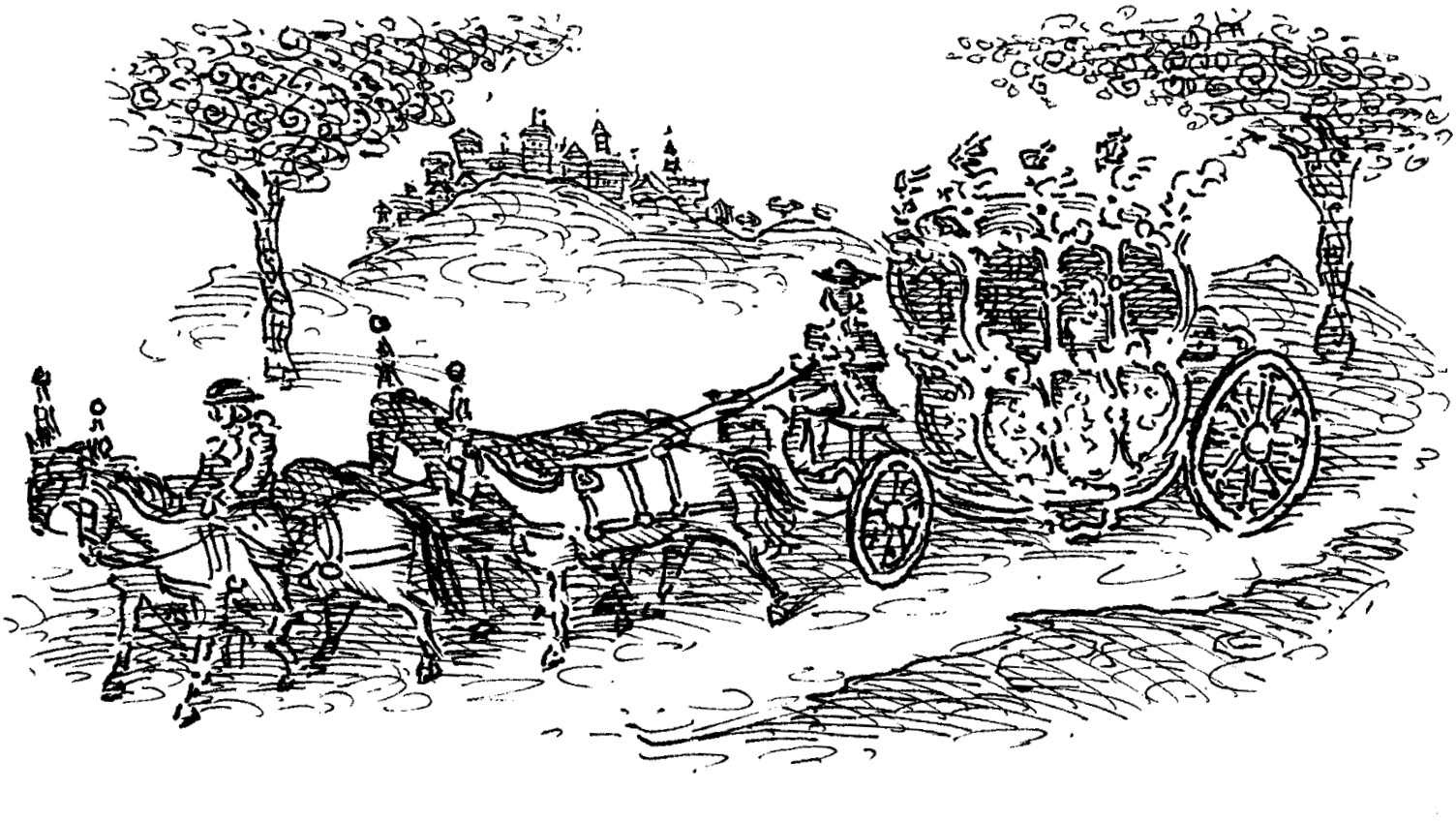 Marie Antoinette rode in a jeweled coach amid a parade of more than fifty other carriages. Hairdressers, chefs, and other attendants traveled with her for the two-and-a-half-week journey. Peasants cheered along the road between Vienna, Austria, and Strasbourg, France. They hoped to catch a glimpse of the young bride-to-be.