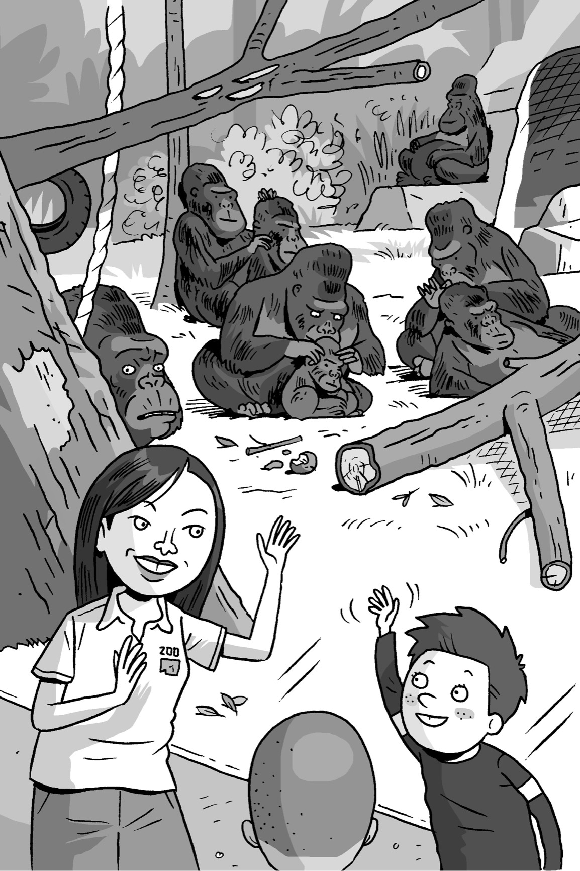 “Well, you didn’t succeed, Hank. Now please apologize to Gina for interrupting her introduction to Gorilla World.”