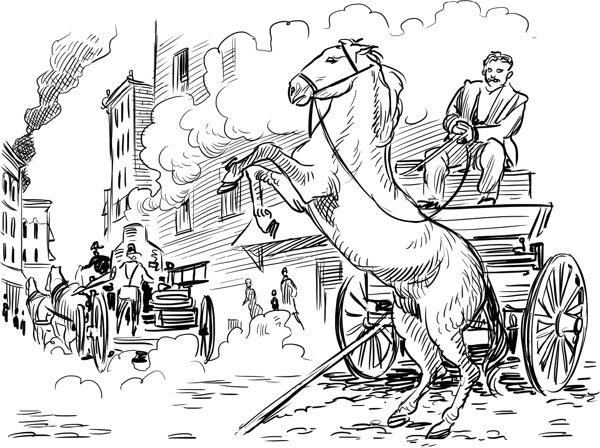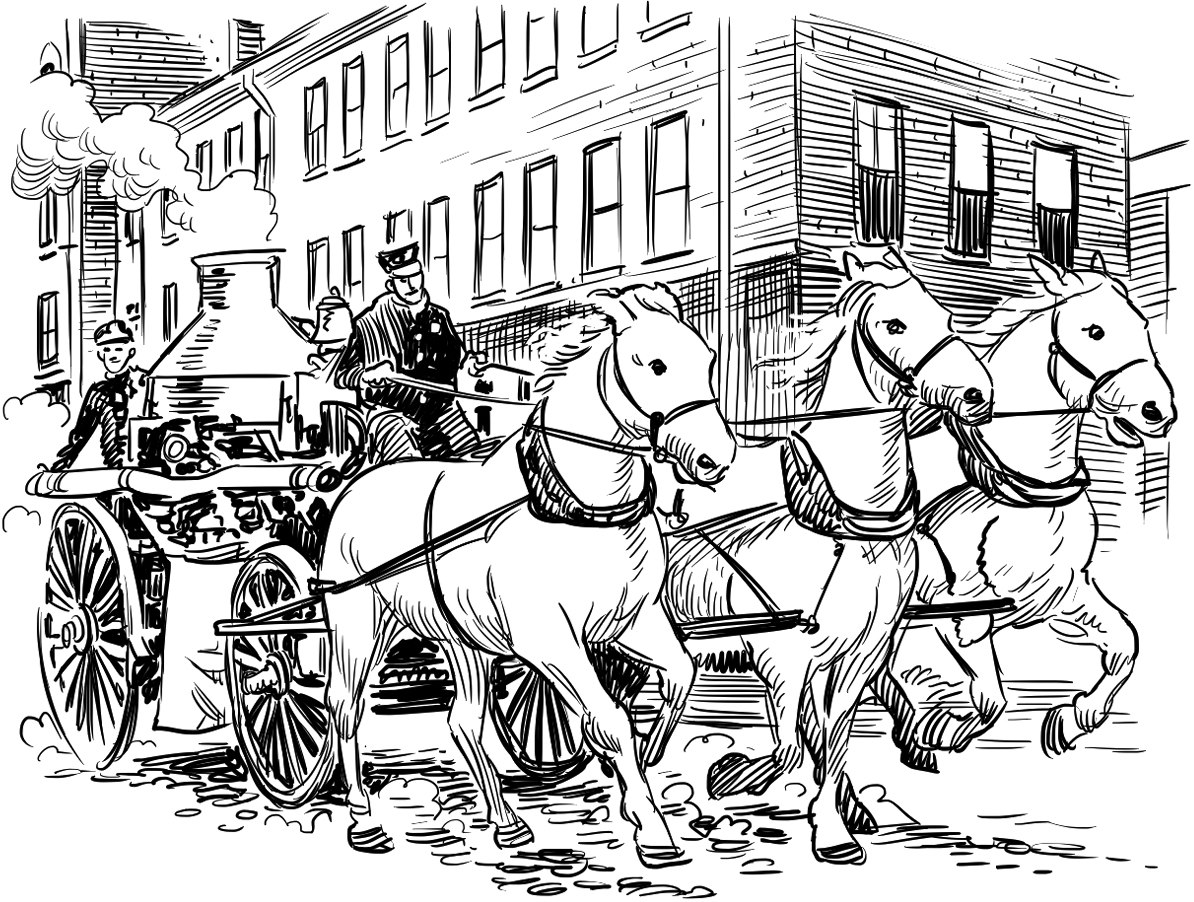 There were problems with making horses pull the engines. It took time to lead horses from their stable and harness them. And only a very special kind of horse could be used. It had to be strong and fast. Most important, it had to be brave enough to run toward a fire instead of away from it. And it had to stand still, right next to the fire while it was being put out. Most firemen didn’t trust horses to do this.