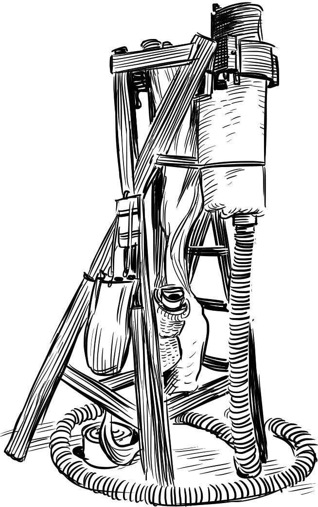 Sometimes a fire was too hot to go near, or too high to reach. Then buckets and axes were not enough. In the sixteenth century, in Europe, people started to use pumps that could shoot water longer distances. The first pumps were like giant squirt guns. They were better than nothing, but they couldn’t spray very far. Then around 1672, a Dutch inventor created the first fire hose. It was hand-sewn out of leather. With a hose, firefighters could aim at a blaze many feet away, and then force water through the hose at it.