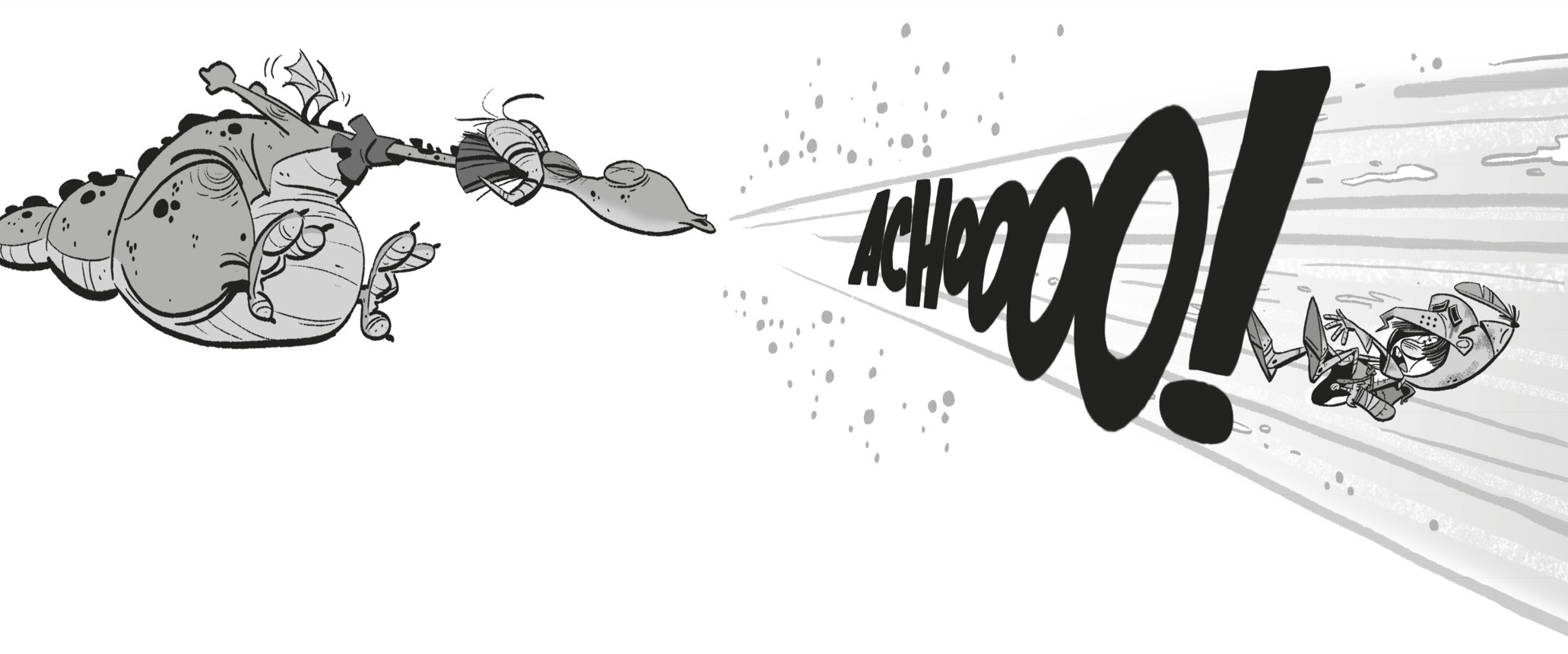 The dragon shook his head. “It’s those apple blossoms. I’m allergic. Aaachoooo!”