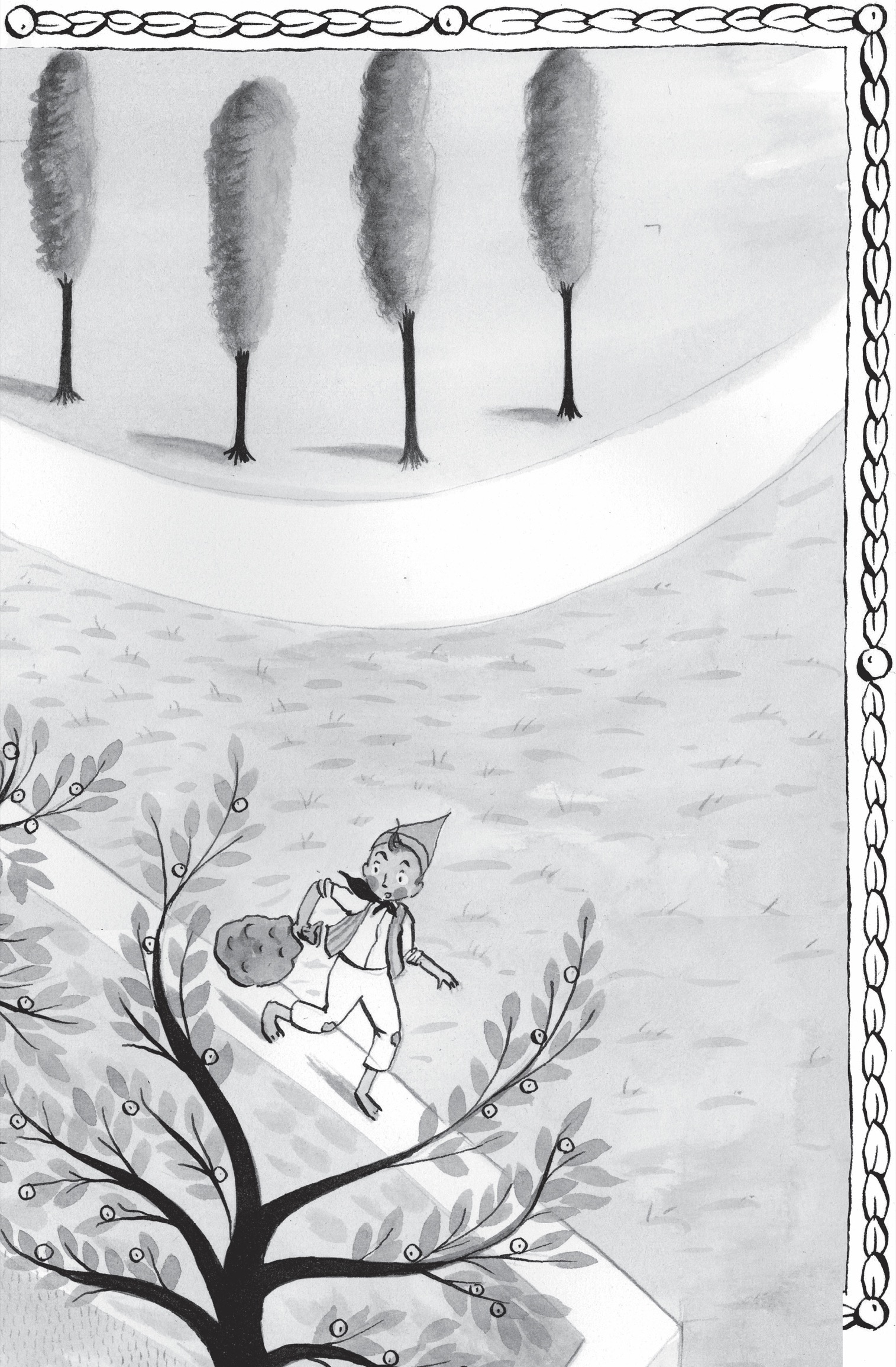 They’re gonna get caught! Or Sergio is, anyway. He’s stuck inside the garden. Primo hops down off the tree to the top of the wall and runs to get Maria Beppina.