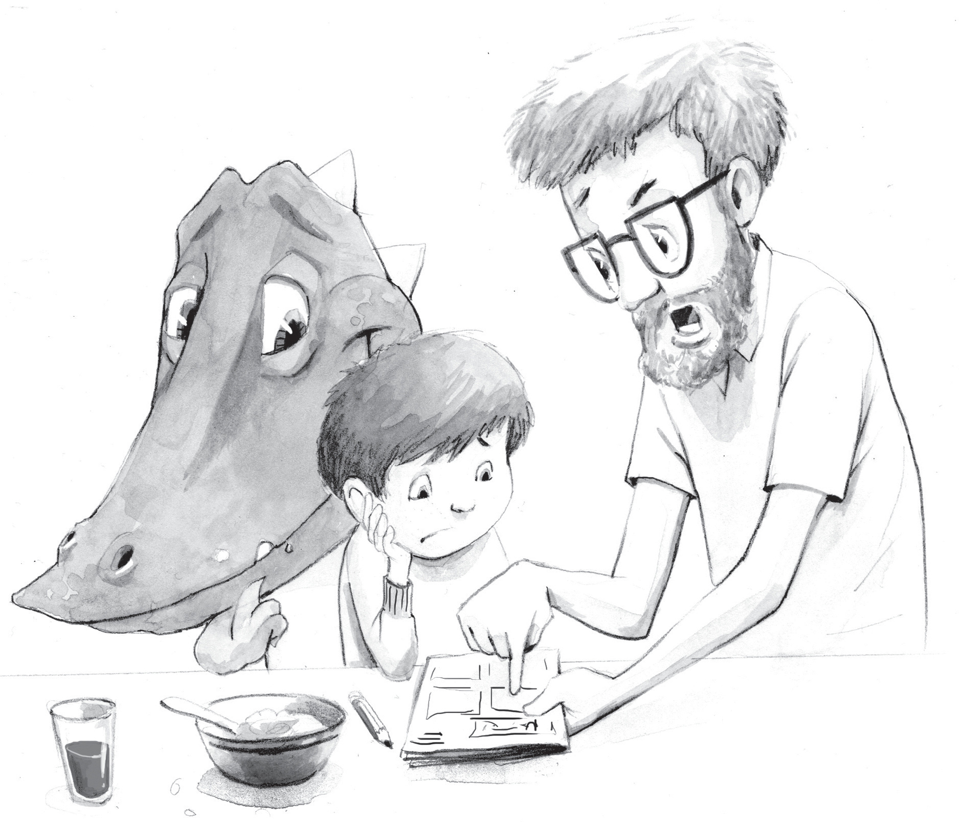 “Fine,” I grumble. I take the vocabulary sheet and start working on it. I feel a breath of air over my shoulder and notice Dragon standing over me, looking at my writing. “I gotta finish this,” I tell him, and turn back to the sheet. “Don’t distract me again with any more weird word contests.”