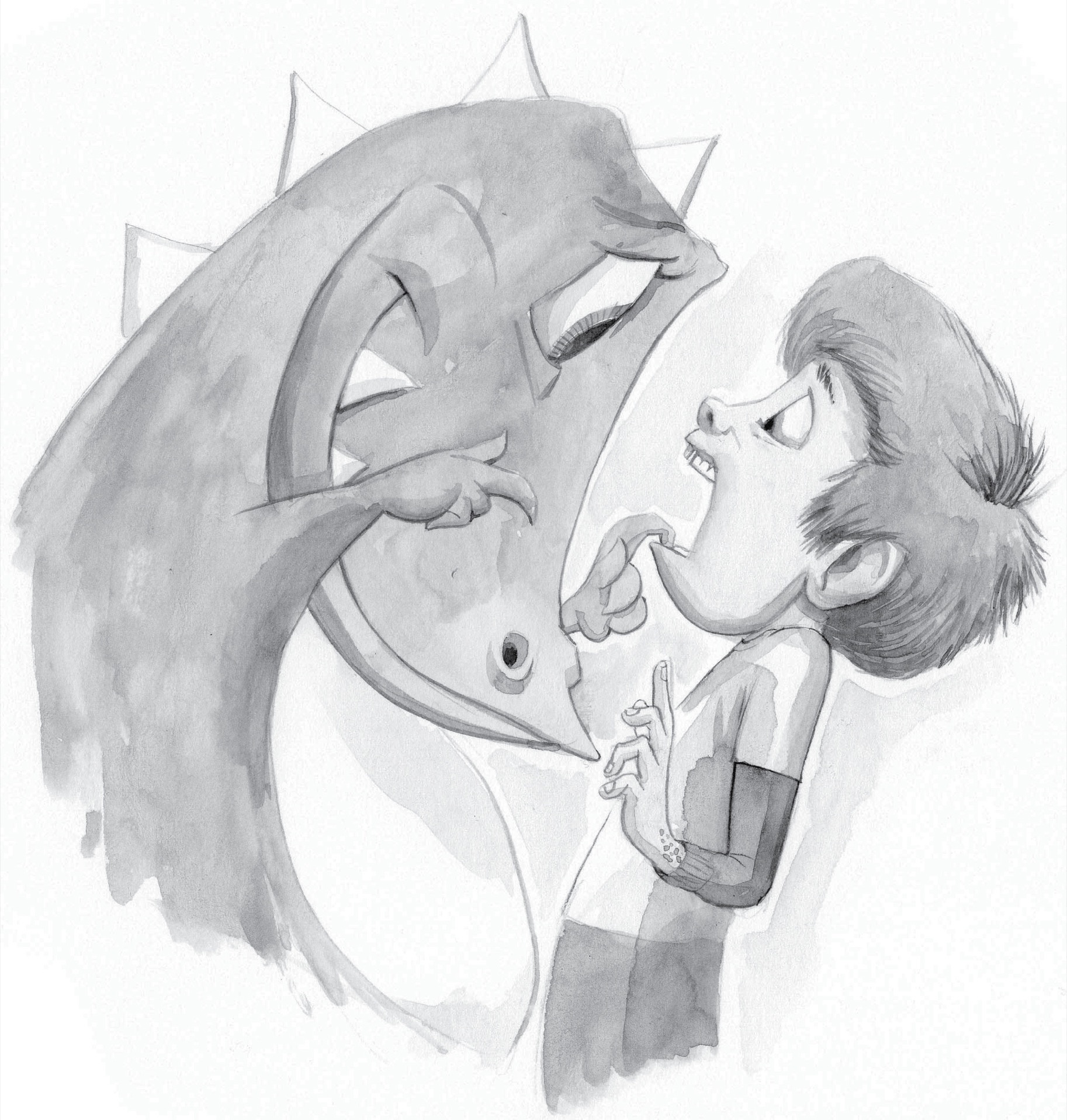 I take a minute to add up my savings. There was the three dollars I got for my last tooth. But I had to give all three dollars to my twin sister, Ellie, when Dragon accidentally scorched her new shoelaces after he burped too close to her shoes. I also earned seven dollars for helping my dad rake the backyard. Until Dragon and I made a bet as to who could jump the highest into the pile, which splattered the leaves all over the yard. And then my dad made me give four dollars back.