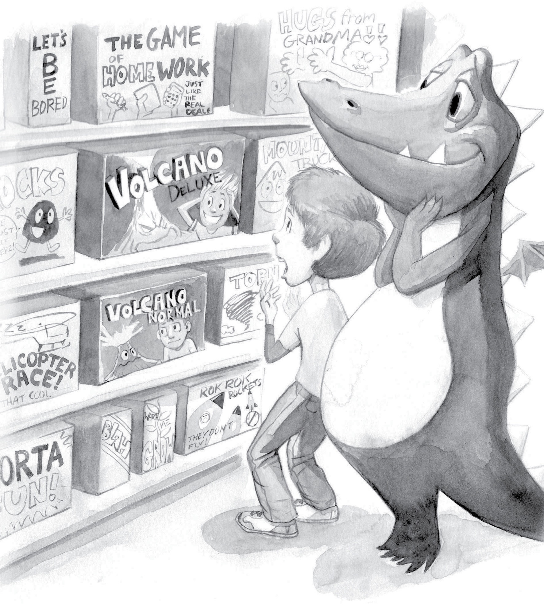 Dragon points to the box. “Please, can we get it?” he asks her as he jumps up and down. “If you buy this for me, I promise to never cause the smoke detectors to go off again in the middle of the night. I promise to share it with Warren. Sometimes. Maybe. And I promise to not eat all the marshmallows as soon as you bring them home from the supermarket!”