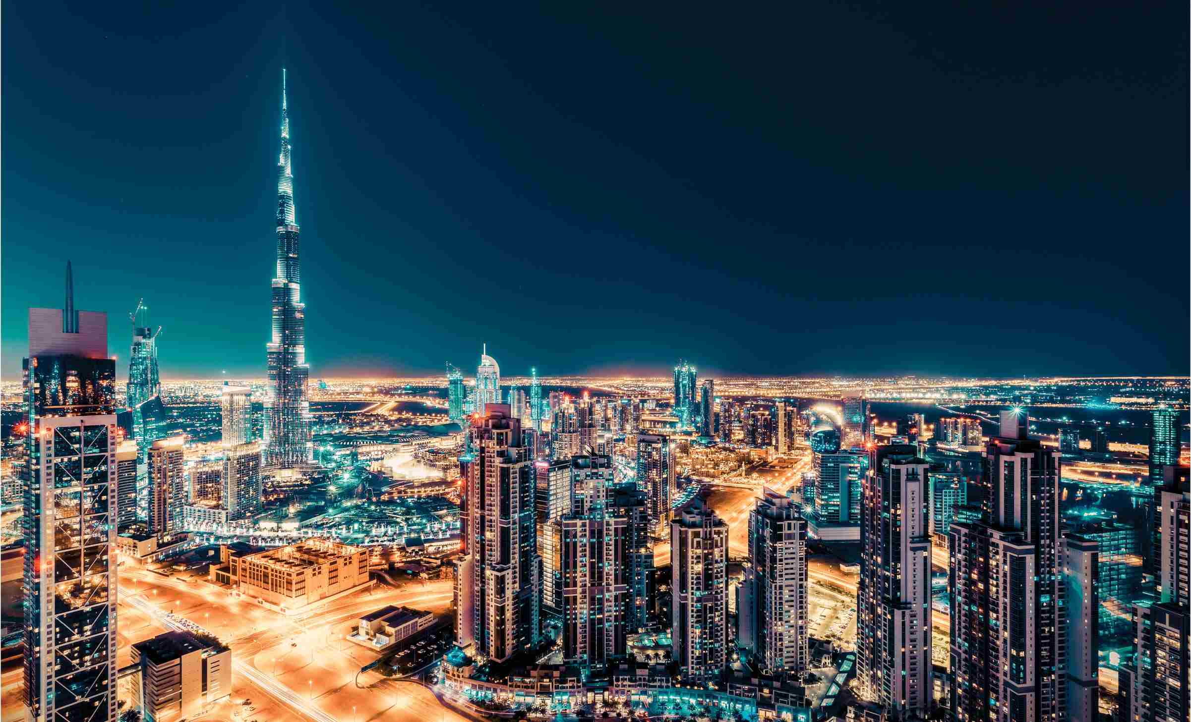 The skyline of Dubai, United Arab Emirates, features incredible skyscrapers, especially Burj Khalifa, the world's tallest building, which includes 1.8 million feet of glass.