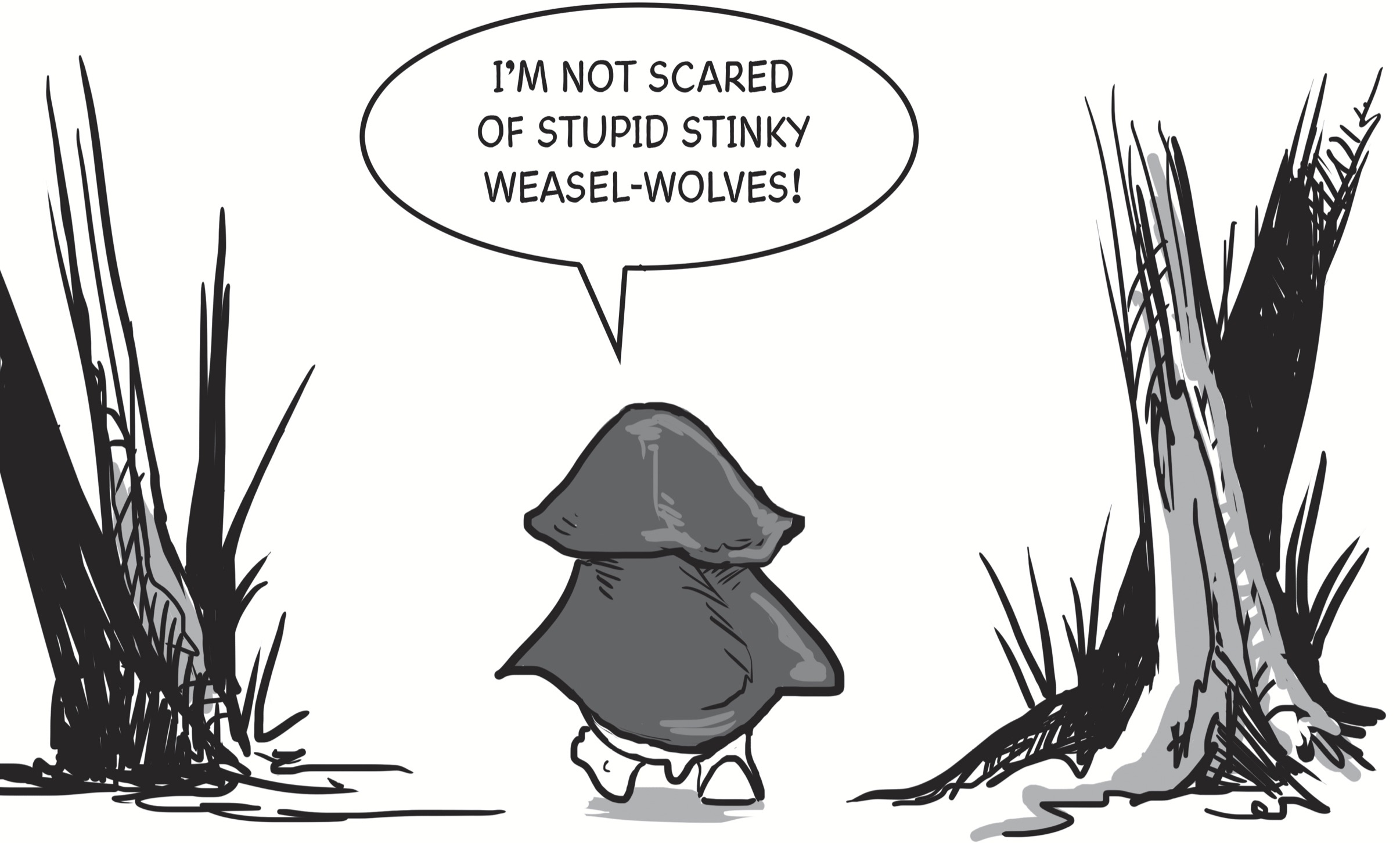 “These aren’t,” said Red, over her shoulder. “ These are just normal weasel-wolves. Some of them are even sort of cute. It’s the big one you have to worry about!”