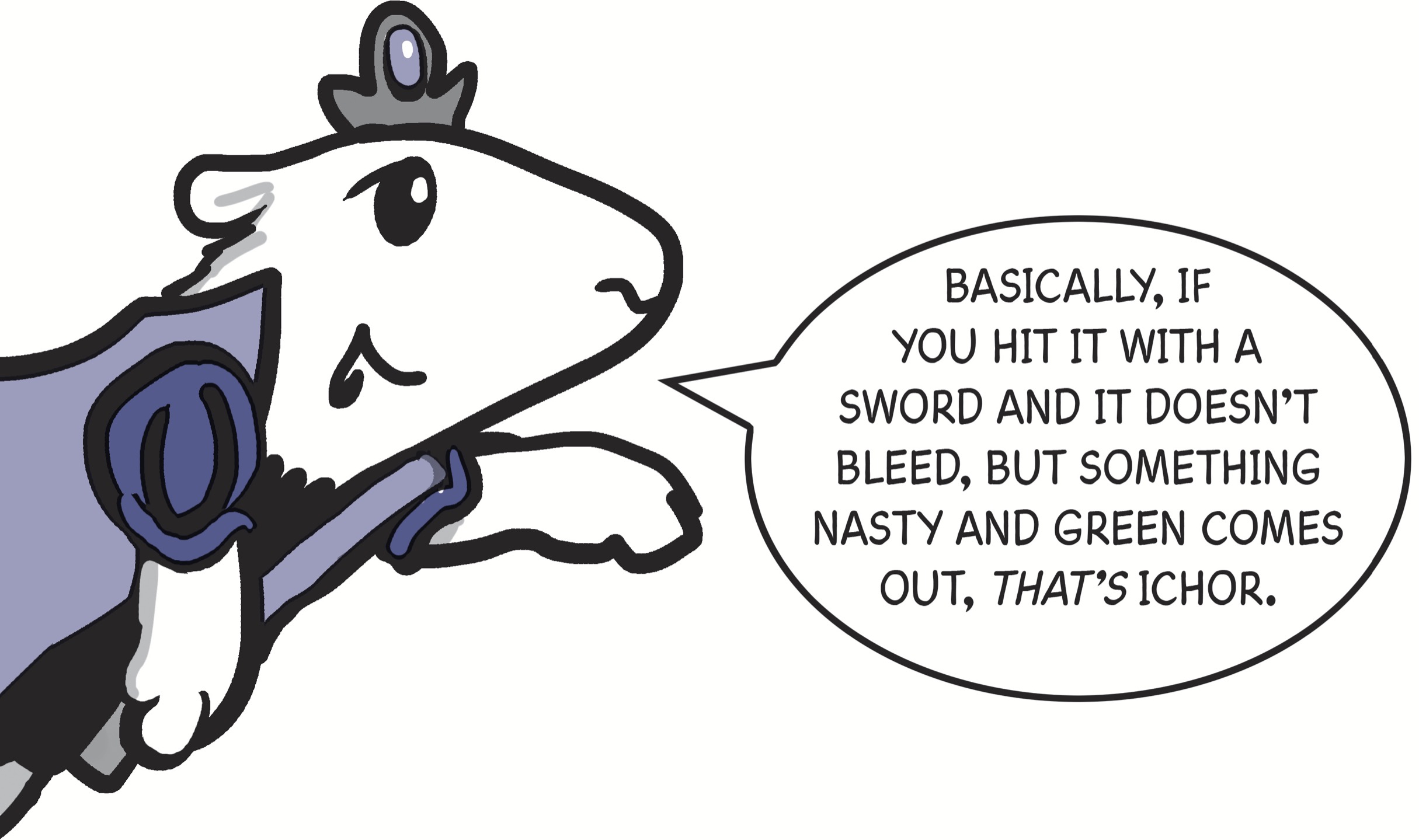 “No, they’re mammals, so they have regular blood,” said Harriet, who had a very one-track mind. “No ichor there at all.”