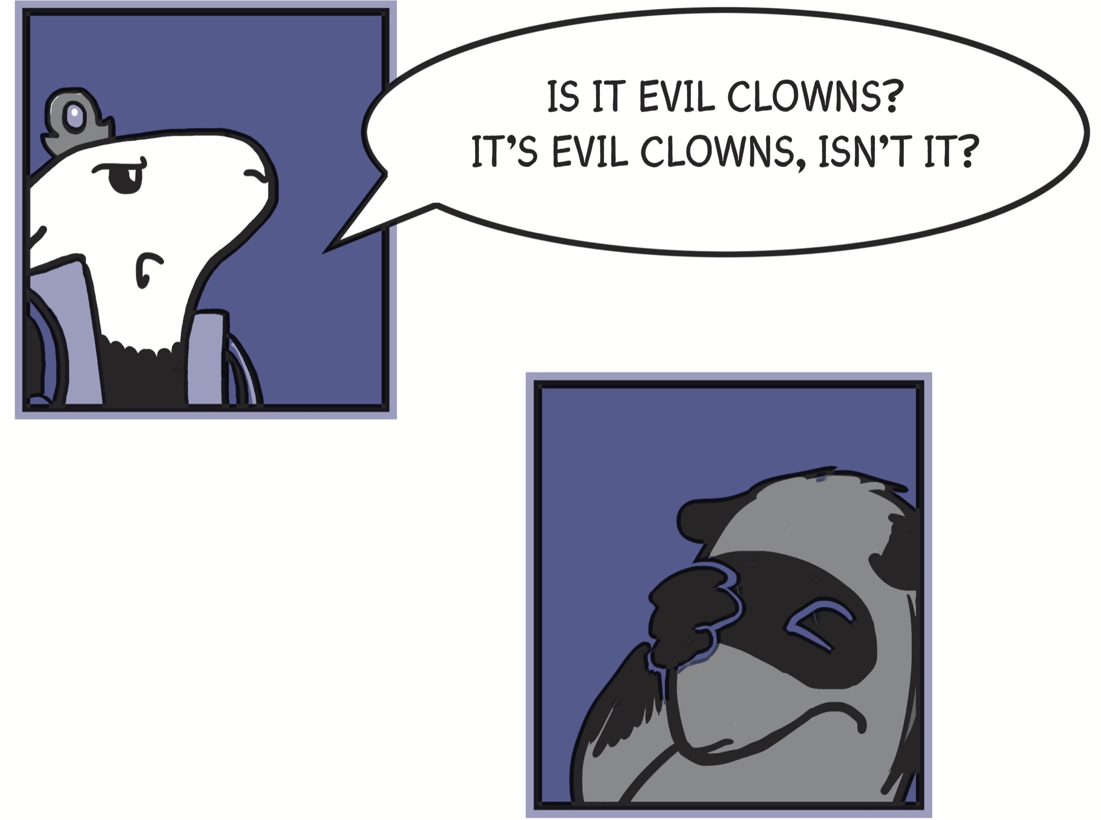 After nearly a minute, they had determined that it was not, in fact, evil clowns, but they were no closer to figuring out what the problem actually was.