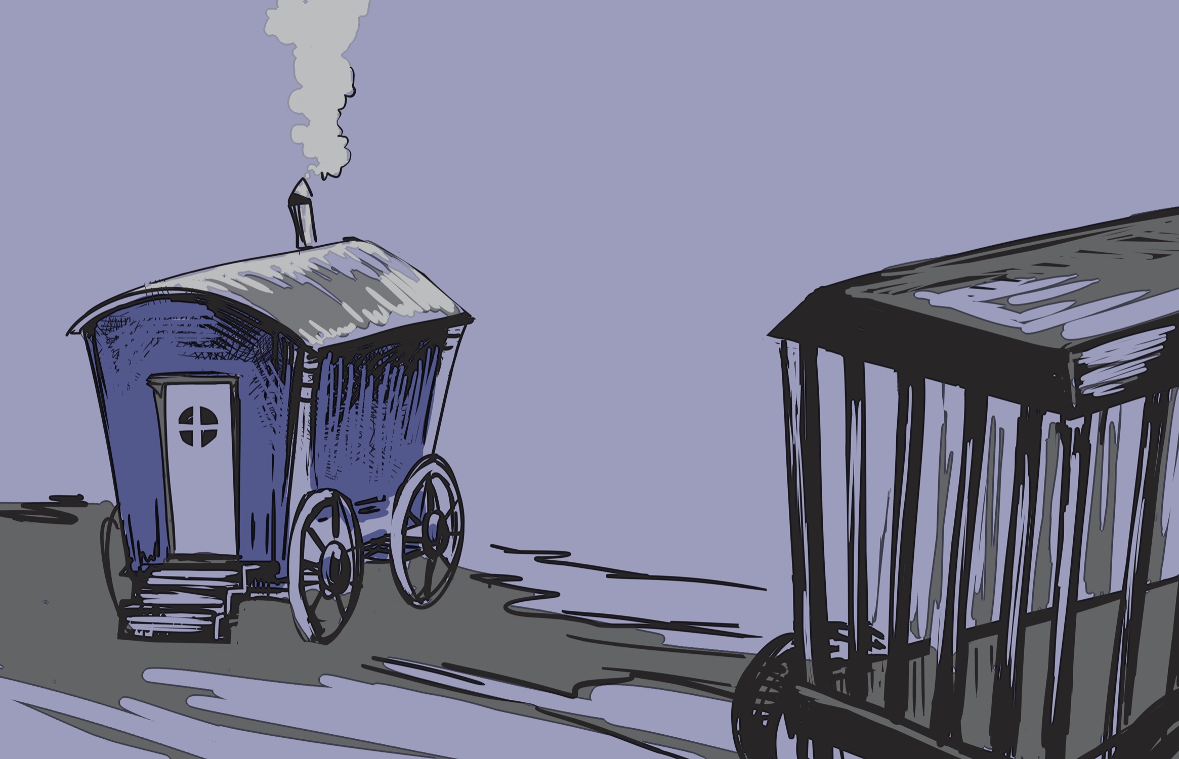 “That’s... um... different...” said Harriet. “Not a lot of picturesque cottages with big wheeled cages outside.”